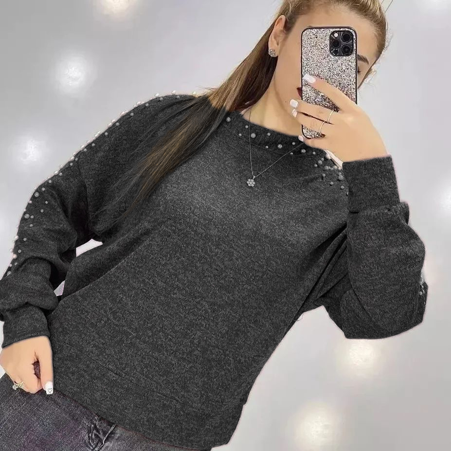 بلوز مرواریدی ذغالی دخترانه مدل venos