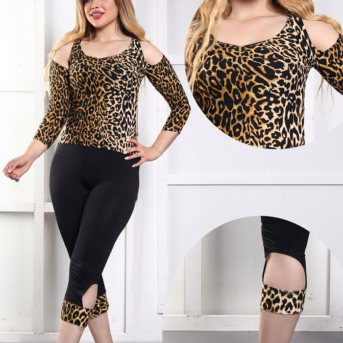 ست زنانه آستین باز طرح پلنگی مدل Samira