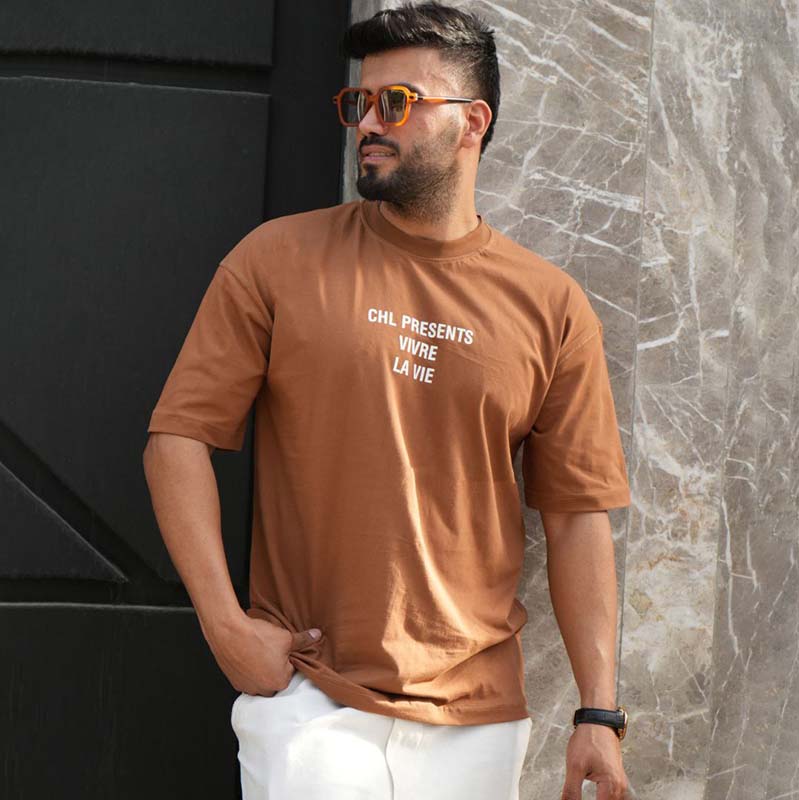 تیشرت مردانه قهوه ای مدل VIVRE LAVIE