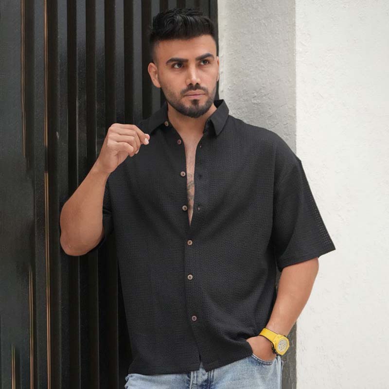 پیراهن مردانه باکسی سوزنی مشکی