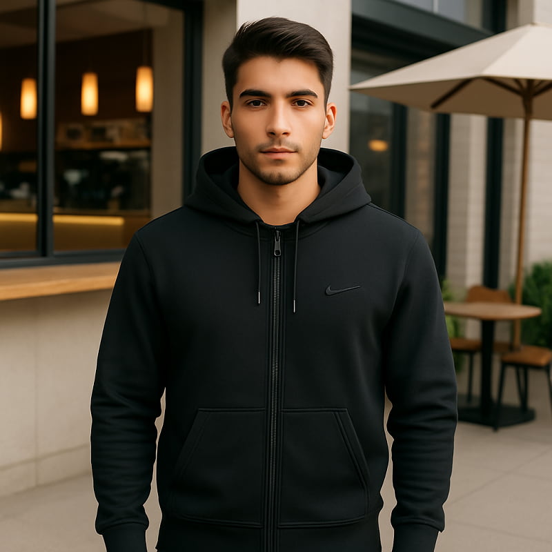 سوئیشرت زیپ دار مردانه بیسیک مشکی-مشکی